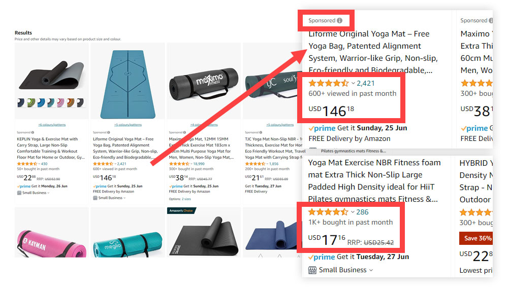 So if you go back to the premium yoga mat... if 2,421 left feedback, you can expect over 9,684 people have purchased. That brings the total sales to $1,415,607.12 (2,421 x 4 x $146.18).